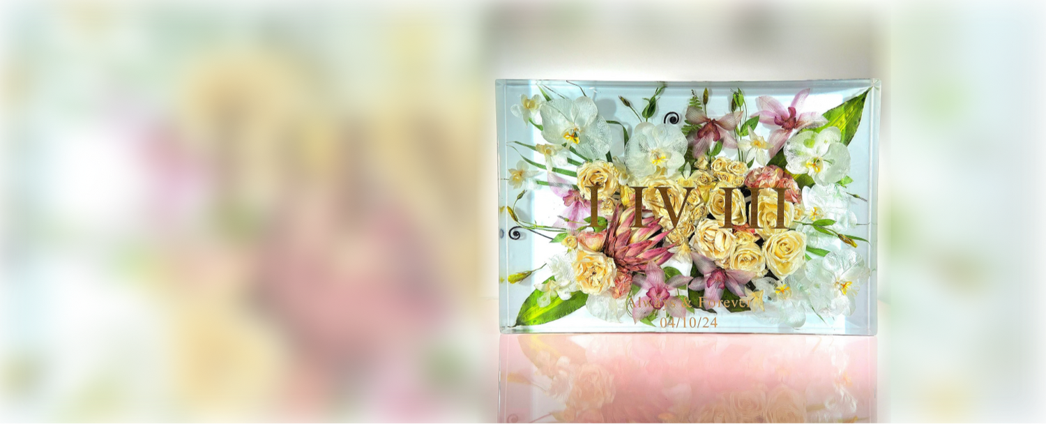 Add on items are also preserved using your wedding flowers and make a great gift for your guests or better yet for yourself. These items can be added on to your order only after chosing a main item. Chose from ring holders, coasters, jewelry trays or artistic cubes.