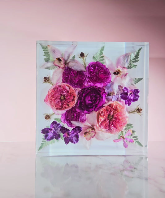 I will create your keepsake and ship it back to you in 5-8 weeks. You will adore your wedding flowers forever in a pretty resin art piece!